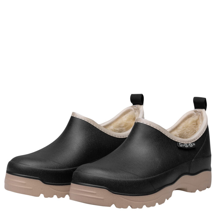 Keveissä vedenpitävissä pihakengissä on reilu mitoitus ja helposti puhdistettava ulkopohja ja niissä on pehmeä ja lämmin karvavuori. Helposti jalkaan puettavissa jalkineessa on lisäksi vetolenkki takana. Jalkine sopii mainiosti kotipihaan, puutarhaan ja mökkikäyttöön myös kylmemmille keleille. Vedenpitävä jalkine on valmistettu pehmeästä synteettisestä EVA-kumiseoksesta. Materiaali kestää kylmää -40°C astetta mutta ei yli +40 °C kuumuutta. Karvavuori on 100 % polyesteriä. Sisältää irrotettavan EVA pohjallisen. Jalkine on helppo puhdistaa likaavan käytön jälkeen. Kuivaus ja säilytys max + 40 °C. |